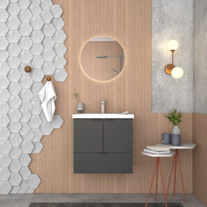 Mueble aereo para baño LIS gris con lavamanos de mármol sintético, dos puertas con cierre lento y cajón con correderas telescópicas*NO INCLUYE GRIFERIA