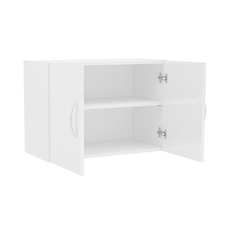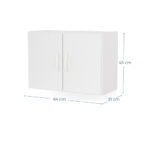 Estante mural aéreo de color blanco fabricado en MDF. Posee 2 puertas con bisagras metálicas y manillas de PVC, además de una repisa interior que permite optimizar el espacio para una mejor organización. De fácil armado e ideal para espacios reducidos al poder anclarse a la pared