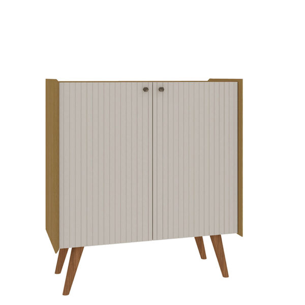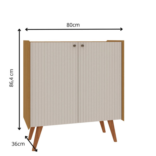 Fabricado en MDF/MDP, el mueble ofrece firmeza y durabilidad para el uso cotidiano. Sus patas elevadas aportan estabilidad y facilitan la limpieza del piso.