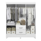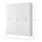 Con una altura de 181 cm, este clóset ofrece amplio espacio para colgar tus prendas en sus 6 puertas con barrales incluidos. Además, cuenta con 2 cajones espaciosos para guardar tus objetos más pequeños y mantener todo en orden.