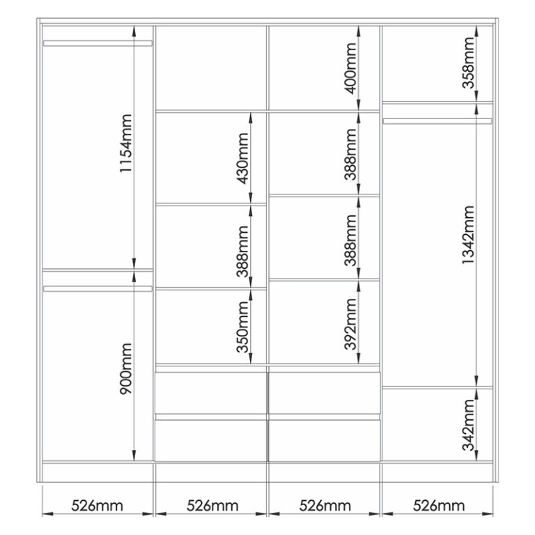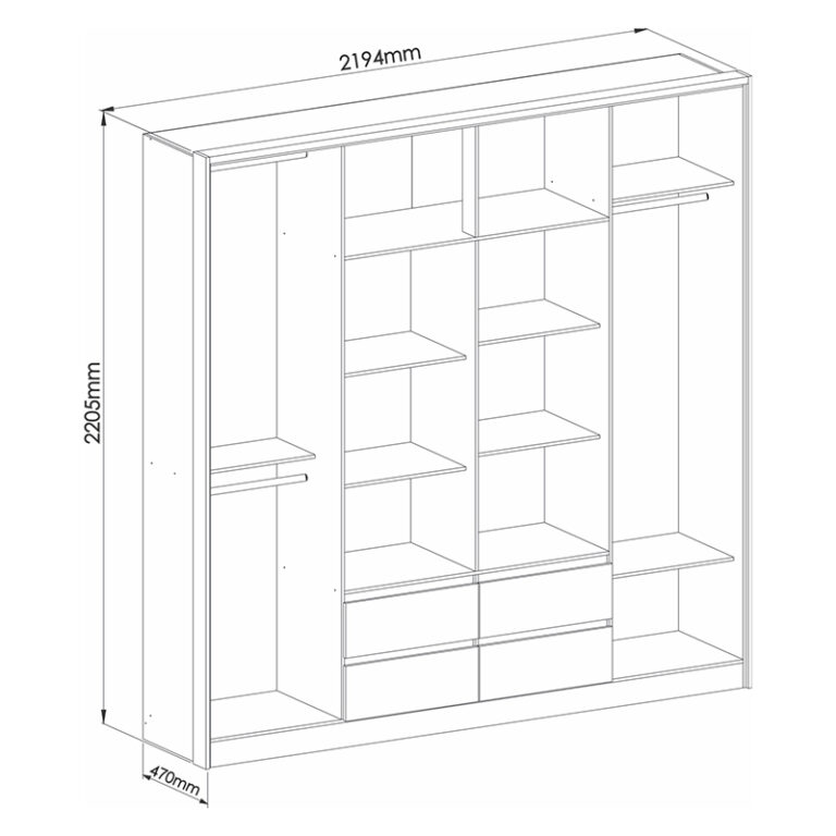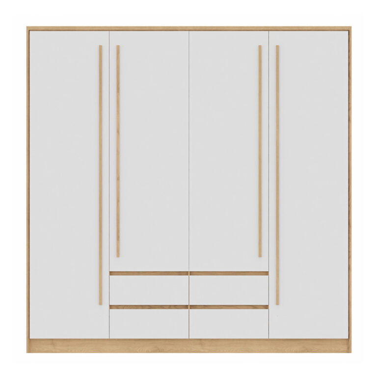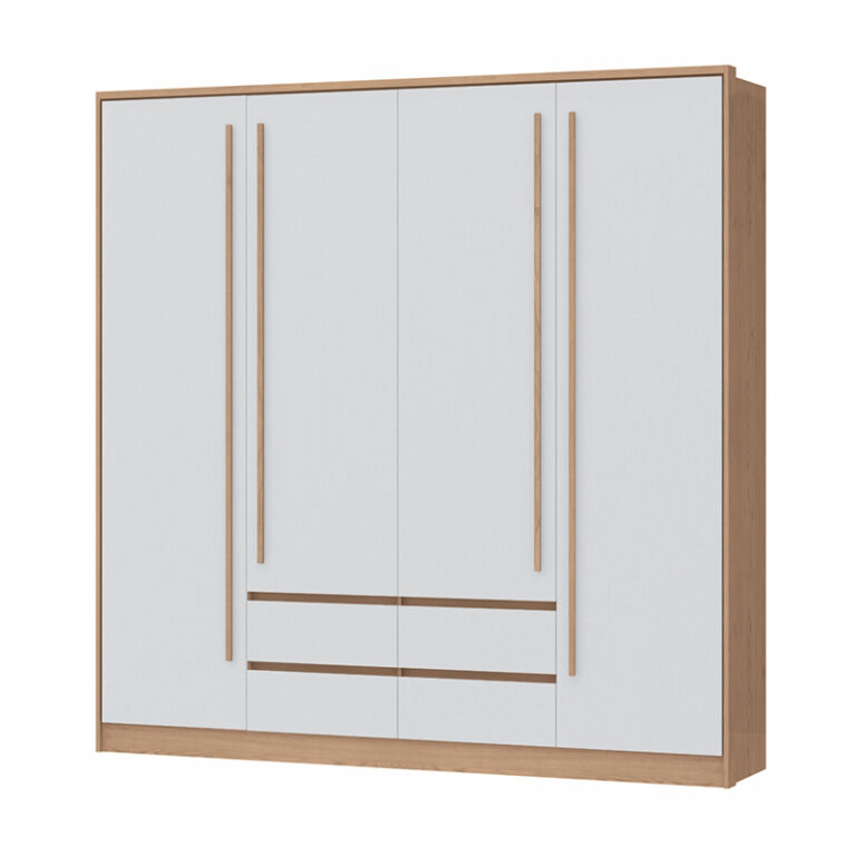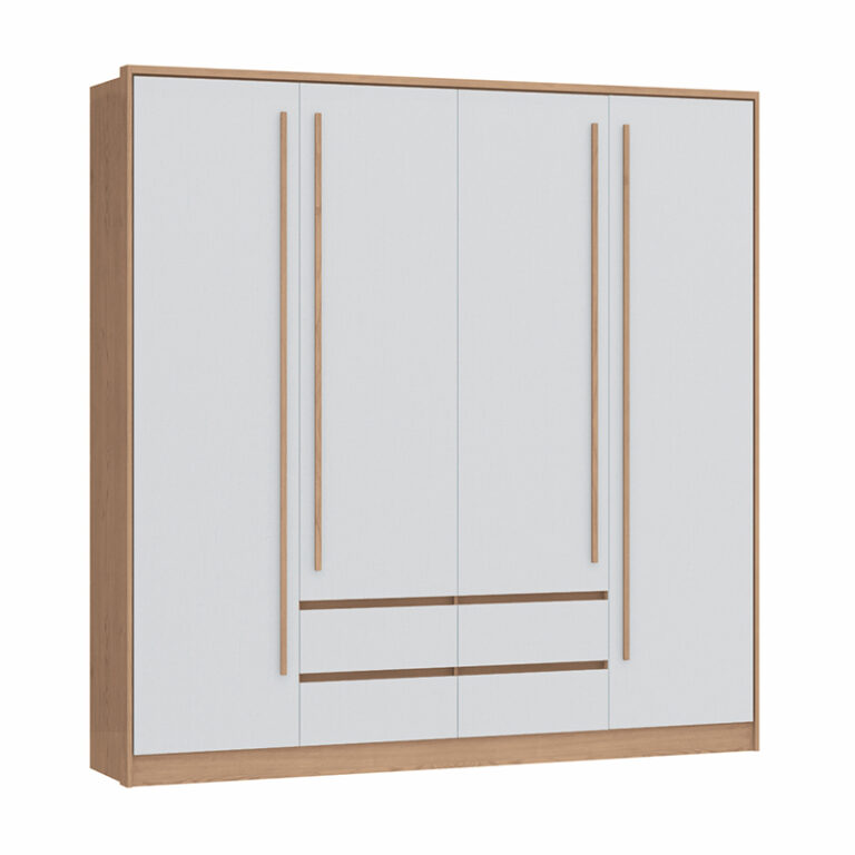 Closet 4 puertas y 4 cajones, estructura en MDP y cubierta en Pintura UV. Closet ideal para organizar tu espacio gracias a sus amplios compartimientos, dandole un encanto a tu dormitorio.