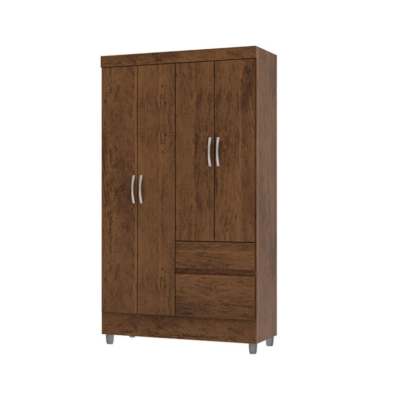 compacto, funcional y perfecto para mantener todo organizado a diario. Con 4 puertas y 2 cajones, ofrece un amplio espacio interior con 5 estantes ideales para guardar ropa, zapatos y otras pertenencias. Además, cuenta con un espacio bien distribuido para que puedas acceder fácilmente a tus artículos favoritos. Se puede montar en dos posiciones, adaptándose a tus necesidades. Los cajones tienen puertas corredizas metálicas que garantizan su durabilidad, mientras que los tiradores ofrecen un ajuste cómodo. El suelo elevado protege contra la humedad y sus modernos núcleos fueron diseñados para realzar el espacio y brindar una excelente experiencia en tu habitación.