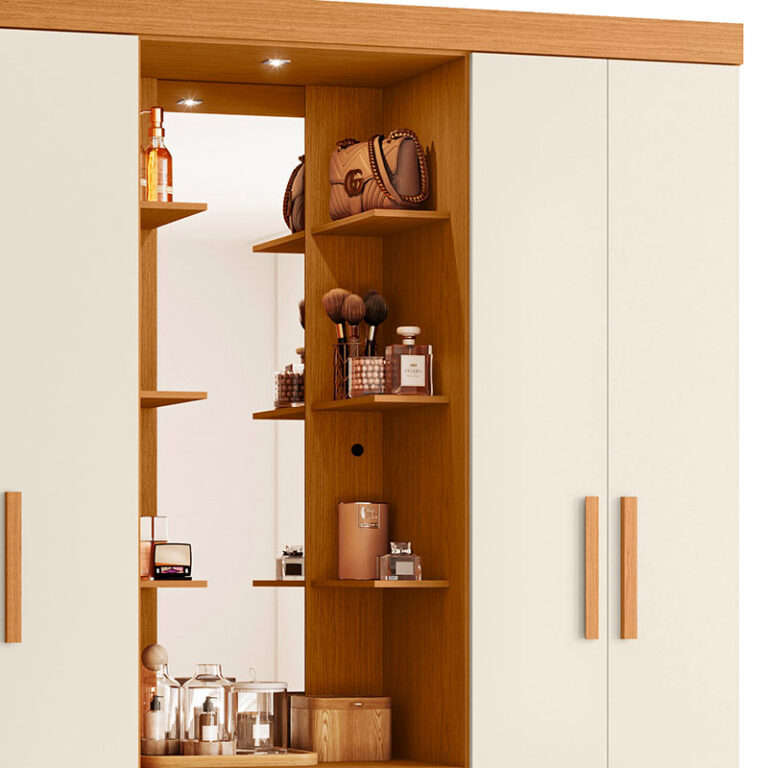 El Closet Olimpia 4P 2C Beige es una excelente opción para quienes buscan un mueble amplio, moderno y práctico para su dormitorio. Su diseño combina gran capacidad de almacenamiento, espejo integrado e iluminación, permitiéndote mantener tu ropa organizada mientras mejoras la funcionalidad y estética del espacio.