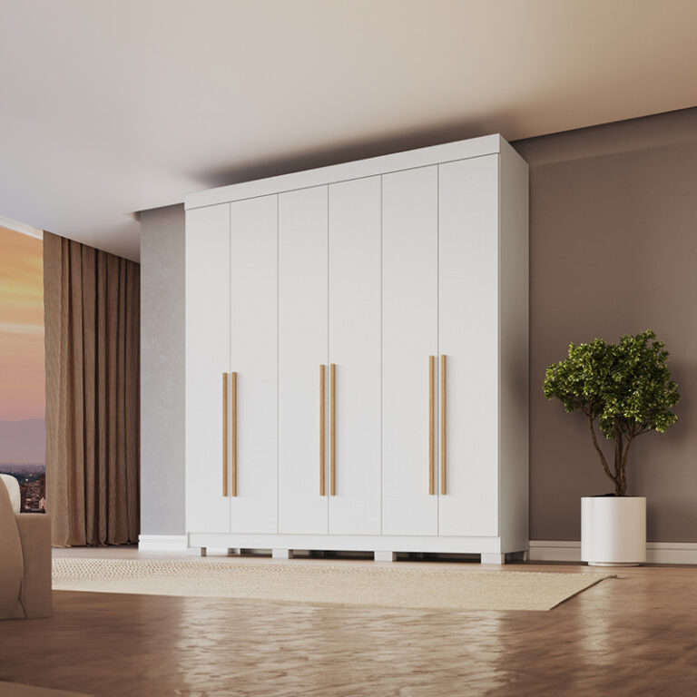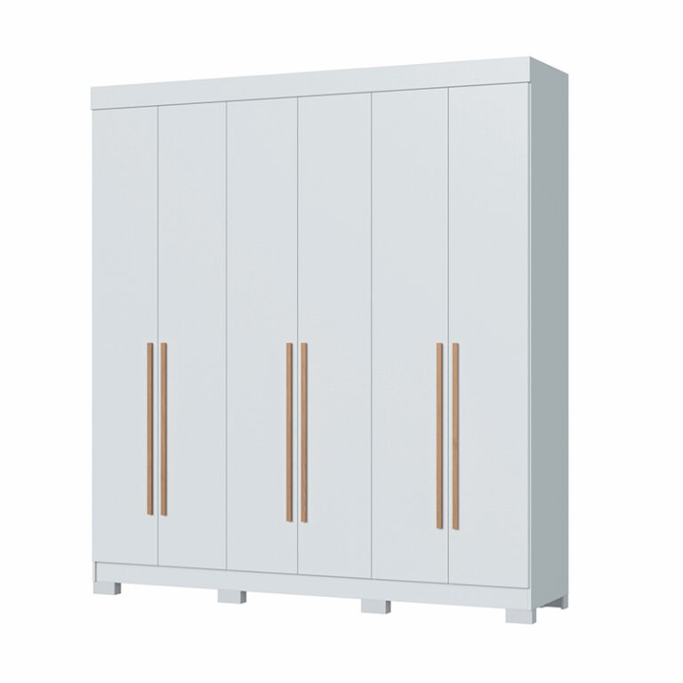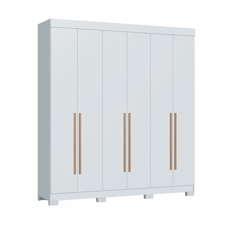 Closet Opus de 6 puertas, con 11 compartimientos en total, estructura en MDP, cubierta en Pintura UV y manillas de madera. Ahora tendrás espacio de sobra para organizar como tu desees y darle un toque diferente a tu habitación.