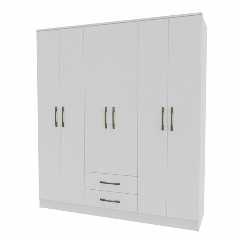 Sus vibrantes tonos y acabados de alta calidad destacan en cualquier espacio, añadiendo un toque contemporáneo y lleno de energía. Las seis puertas ofrecen un amplio espacio para colgar y organizar tu ropa, mientras que los dos cajones inferiores brindan espacio adicional para guardar objetos pequeños. Con su diseño moderno y colores brillantes, el clóset Pequim es la elección perfecta para mantener tus prendas y accesorios ordenados con estilo y vitalidad.