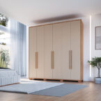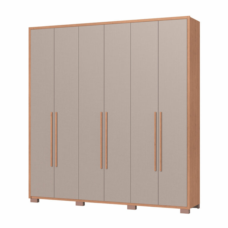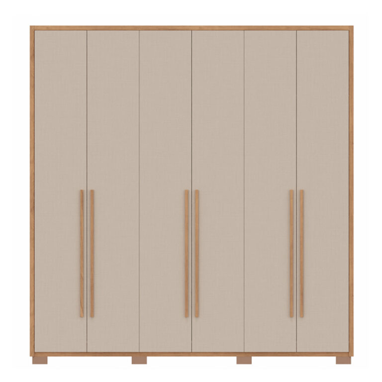 Closet Safira de 6 puertas, 3 cajones, 14 compartimientos en total, estructura en MDF, cubierta en Pintura UV y manillas de madera. Ahora tendrás espacio demás para organizar tu dormitorio como gustes y hacer de tu habitación tu espacio favorito.