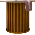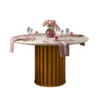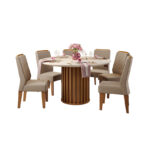 La mesa redonda, con un ancho de 136 cm y una altura de 80 cm, es el complemento perfecto para las sillas. Fabricada con materiales duraderos como MDF y vidrio, esta mesa ofrece un espacio amplio para disfrutar de comidas en familia o con amigos. Además, su diseño expandible permite ajustar su longitud según tus necesidades.