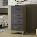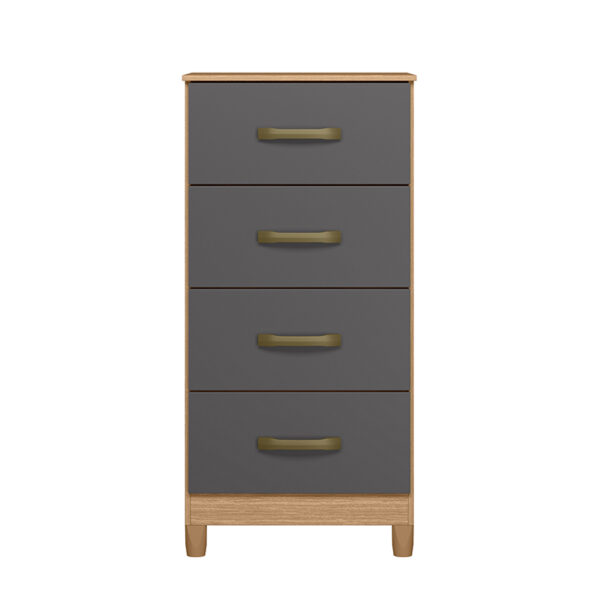 Cómoda fabricada en aglomerado MDP con terminación en pintura UV. Posee 4 cajones, con manillas de pvc. Incluye 4 patas que le dan altura y además facilitan la limpieza del piso. Ideal para organizar poleras o ropa interior. Puedes combinarla con cualquier closet de nuestra línea Mobi.