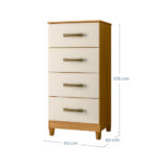 Cómoda fabricada en aglomerado MDP con terminación en pintura UV. Posee 4 cajones, con manillas de pvc. Incluye 4 patas que le dan altura y además facilitan la limpieza del piso. Ideal para organizar poleras o ropa interior. Puedes combinarla con cualquier closet de nuestra línea Mobi.