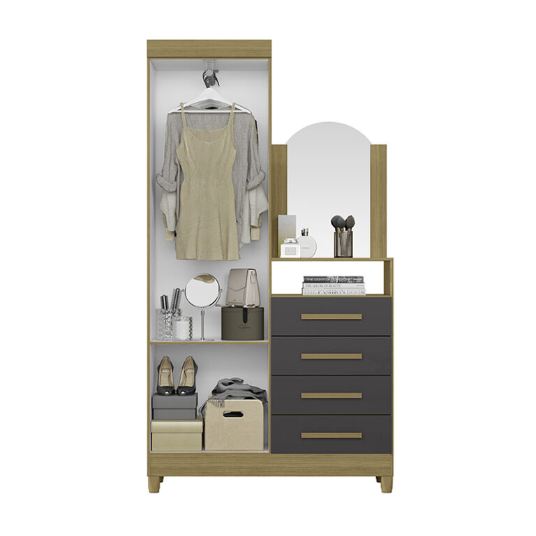 La Cómoda Capri 2p y 4c Vekka es un mueble moderno y funcional que se adapta a cualquier estilo de decoración. Con 2 puertas y 4 cajones, ofrece amplio espacio de almacenamiento para organizar tus pertenencias. Sus estantes ajustables te permiten personalizar su distribución según tus necesidades.