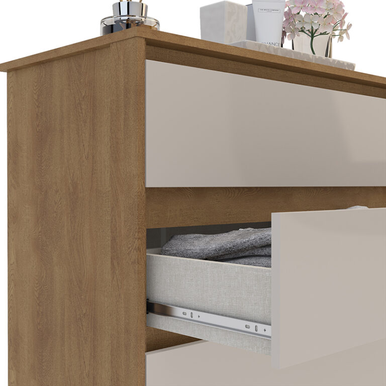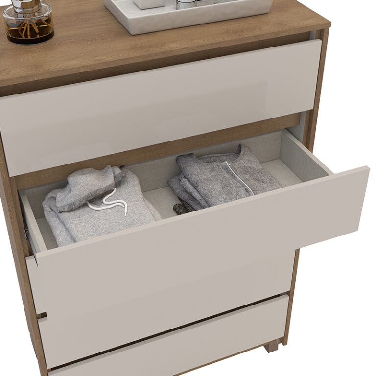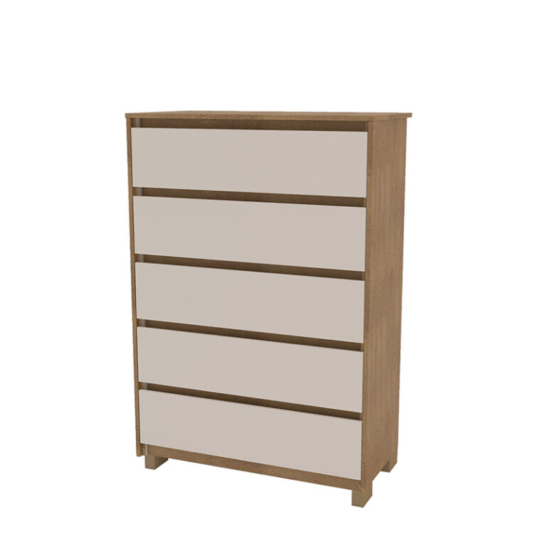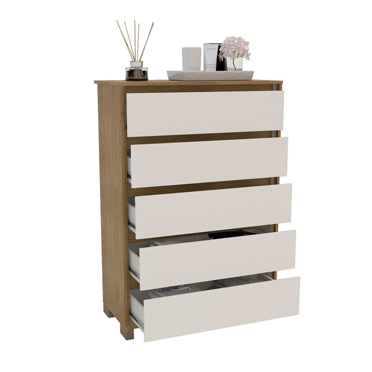 Cómoda Coimbra café/blanco 5 cajones, estructura en MDP y cubierta en Pintura UV