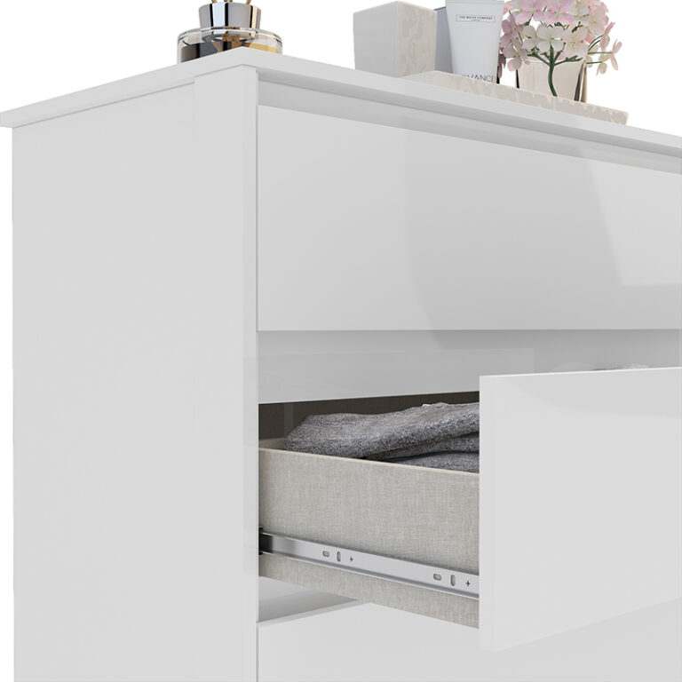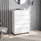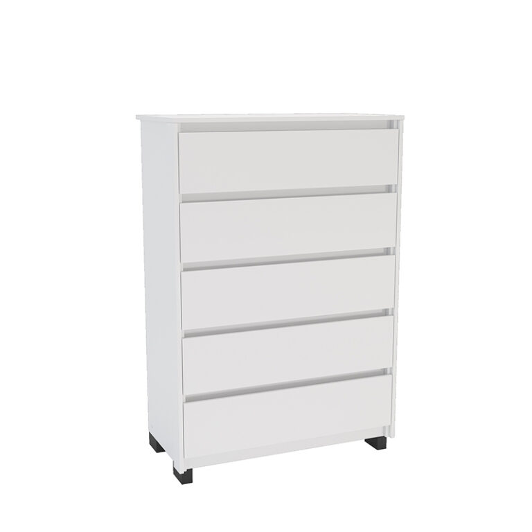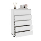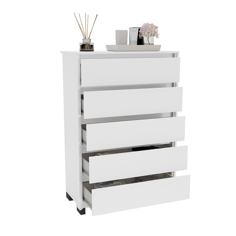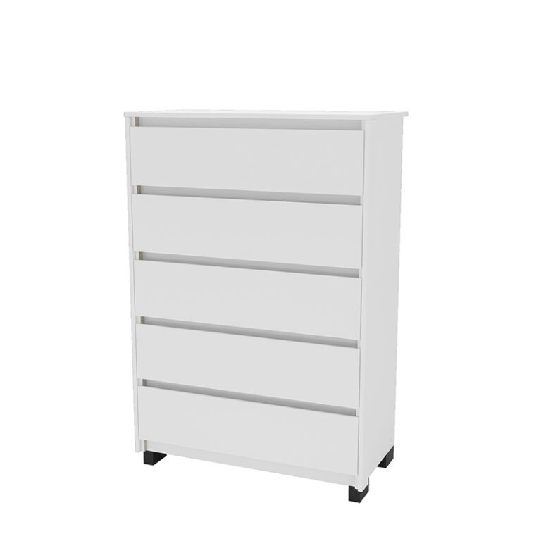 Cómoda Coimbra blanca 5 cajones, con estructura en MDP y cubierta en Pintura UV