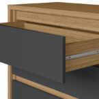 Fabricada con MDP de alta calidad y con correderas telescópicas, esta cómoda es resistente y duradera. Además, sus puertas y bisagras de metal garantizan un funcionamiento suave y seguro.