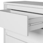 Fabricada con MDP de alta calidad y con correderas telescópicas, esta cómoda es resistente y duradera. Además, sus puertas y bisagras de metal garantizan un funcionamiento suave y seguro.