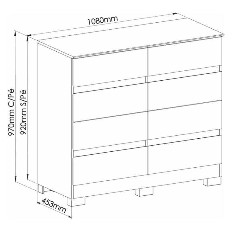 Cómoda Lara 8 cajones, estructura en MDP, cubierta en Pintura UV y patas en ABS. La cómoda perfecta para enamorarte de tu espacio, un diseño contemporáneo sin igual junto a una capacidad de organización eficiente.