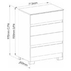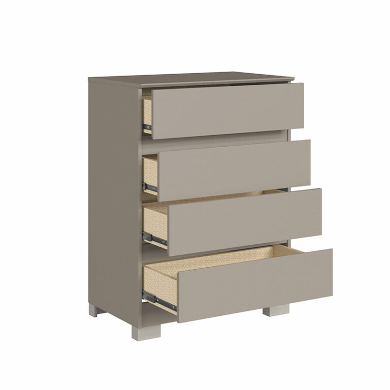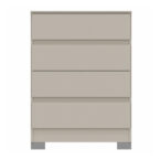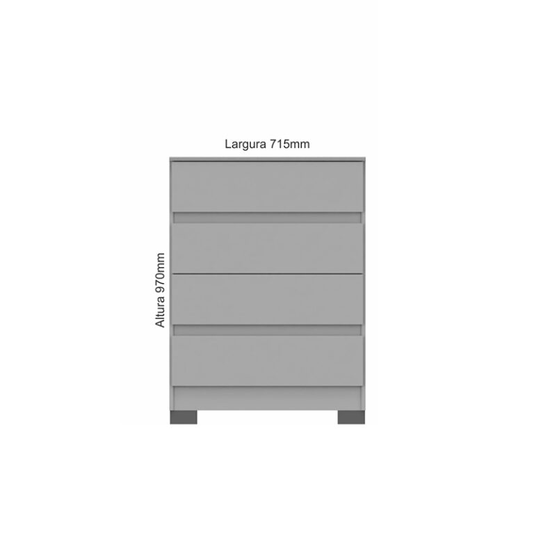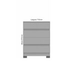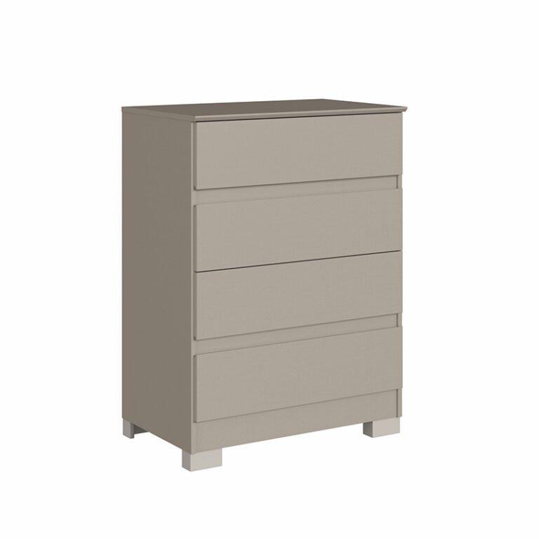 Cómoda Maia 4 cajones, estrucutra en MDP, cubierta en Pintura UV y patas en ABS. Es ideal para no usar un espacio gigante, pero tener buena capacidad de organización. Aparte tiene un dieseño fácil de combinar en cualquier habitación
