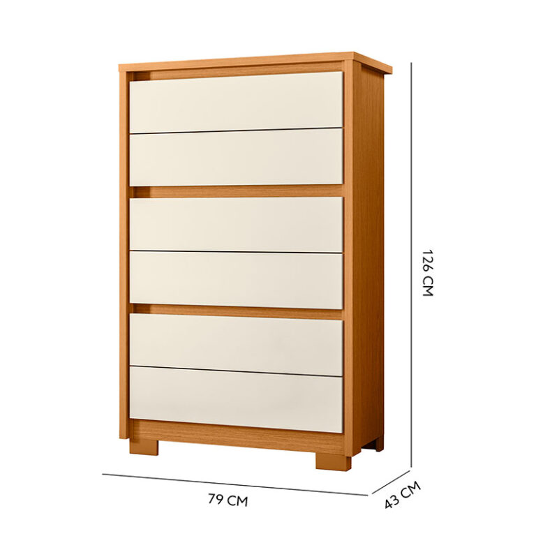 La Cómoda Unno Blanca 6 Cajones es el complemento perfecto para mantener tu ropa y accesorios siempre organizados.