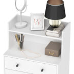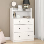 Cómoda fabricada en MDP con terminación en pintura UV color blanco, posee 3 cajones con tiradores pvc, además cuenta con 2 repisas. Su diseño es perfecto para quienes aman el estilo romántico.