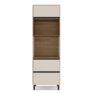 Optimiza tu espacio con este mueble de cocina multifuncional de diseño moderno y práctico. Con una altura total de 244 cm, ofrece amplios compartimientos distribuidos estratégicamente para adaptarse a electrodomésticos como hornos o microondas, así como utensilios y accesorios de cocina.