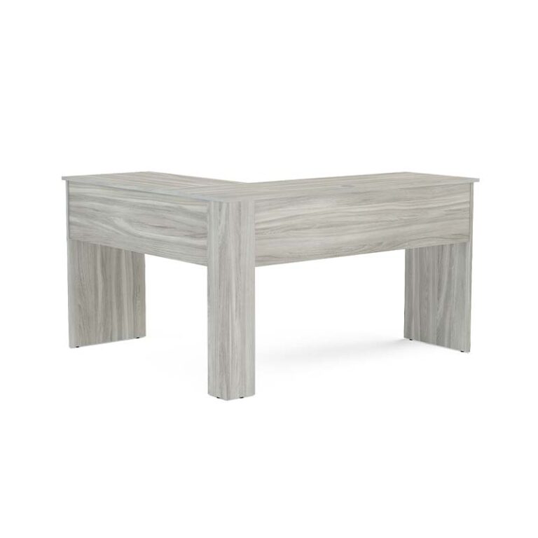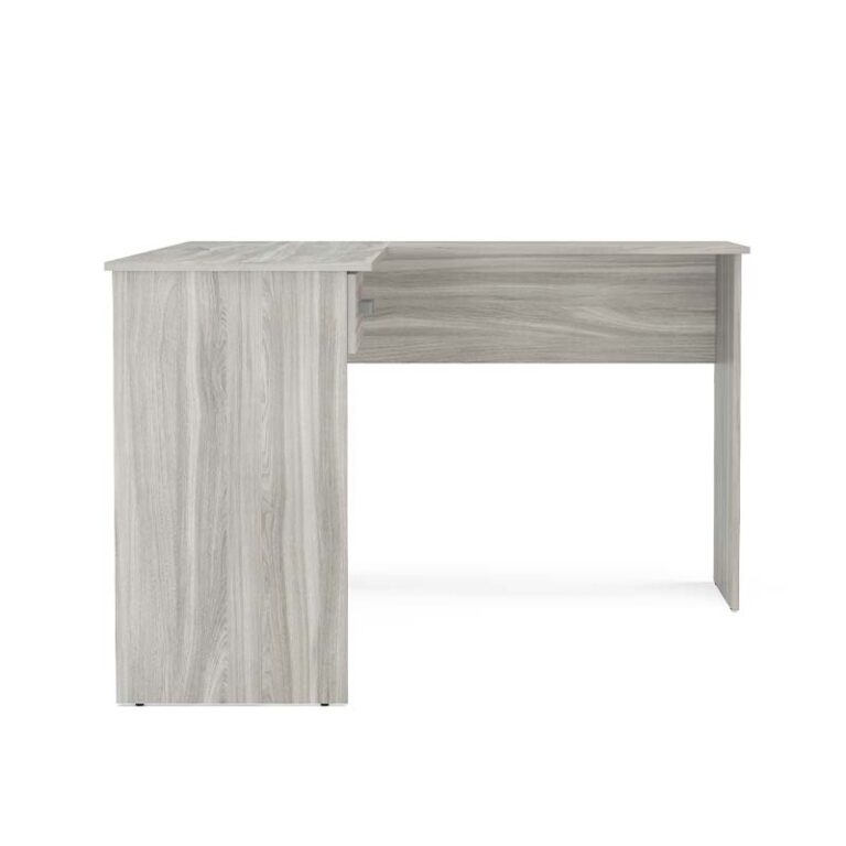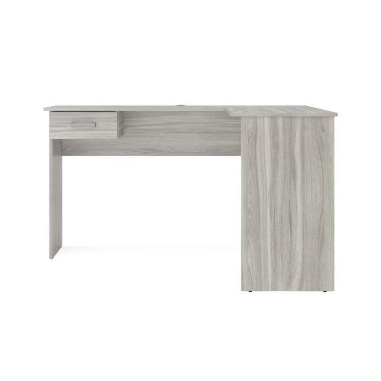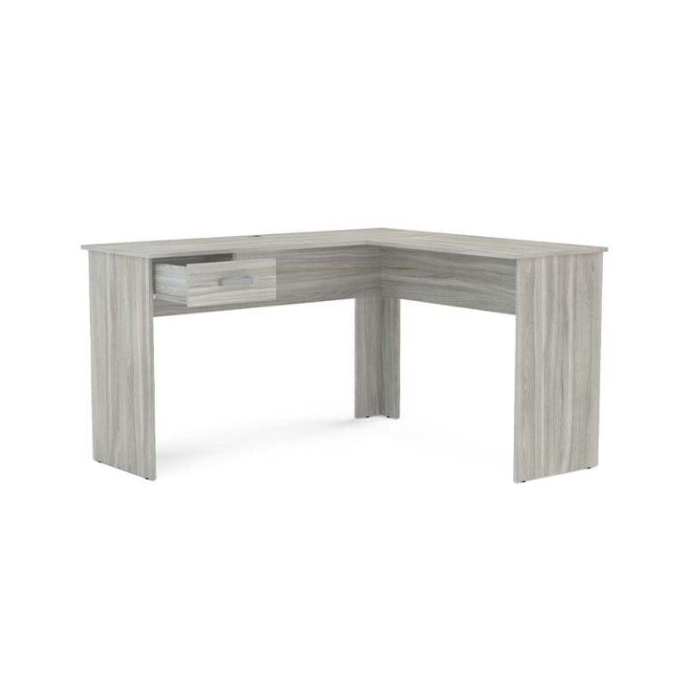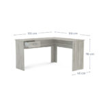 Escritorio esquinero fabricado en MDP con terminación en pintura UV, que le otorga un acabado símil madera. Posee 1 cajón con corredera metálica y manilla de PVC. Es ideal para quienes buscan un amplio espacio de trabajo