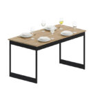 Su diseño industrial combina una cubierta en tono café con una estructura metálica negra de líneas rectas, logrando un estilo sobrio, moderno y profesional. Esta combinación aporta carácter al ambiente sin sobrecargar el espacio visual, permitiendo integrarlo fácilmente en decoraciones contemporáneas, minimalistas o industriales.