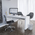 Escritorio Rio fabricado en aglomerado MDP color blanco. Diseño simple y práctico, perfecto para aportar un toque contemporáneo en tu oficina o dormitorio.