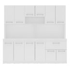 Cocina fabricada en MDP en color blanco con un diseño que se adapta a los más variados ambientes de cocina gracias a su diseño contemporáneo. Posee 12 puertas y 1 cajón con tiradores de plástico y espacio en la encimera para guardar horno y microondas. Amplio espacio interno para guardar utensilios de forma organizada para la practicidad del día a día.