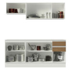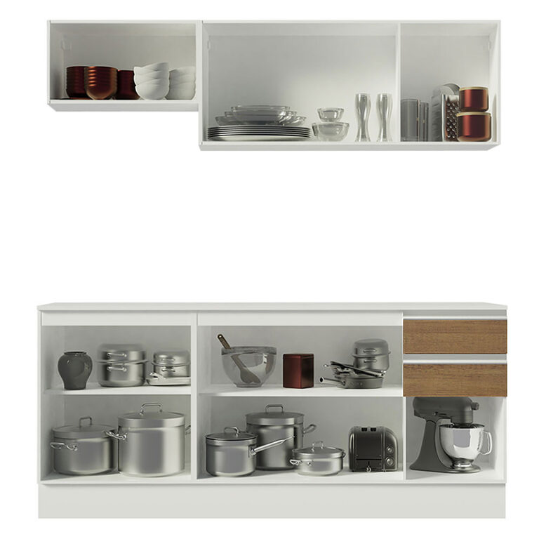 COCINA 180 SUPER SMART en aglomerado MDP color café y blanco. Posee 9 puertas y 2 cajón con correderas metalicas, con vidrio en mueble aereo. Su diseño contemporáneo y gran tamaño te ayudaran a mantener tu cocina organizada y con estilo.