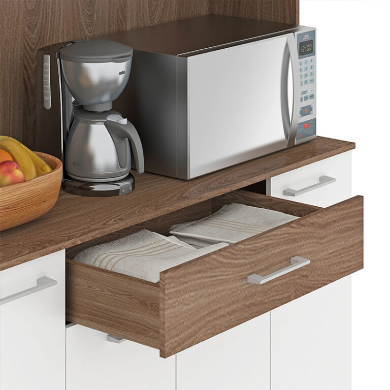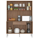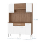Kit de cocina fabricado en aglomerado MDP con terminación en pintura UV que le otorga un acabado símil madera y color blanco. Posee 7 puertas y 1 cajón con manillas plásticas. Además cuenta con 5 patas de ABS plástico que le dan estabilidad y altura que facilitará el aseo. De amplio tamaño y diversos compartimientos en donde podrás organizar todos tus utensilios.