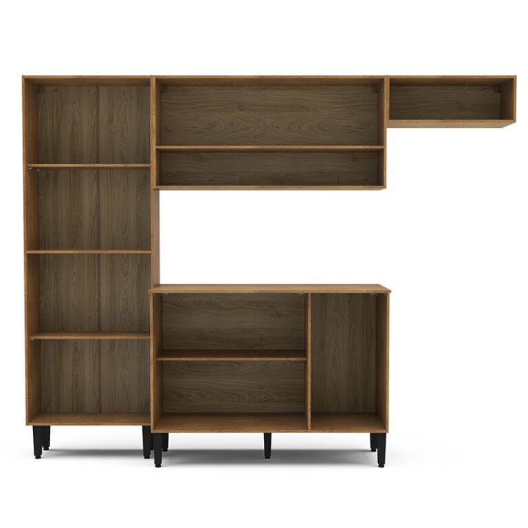 Con medidas de 183 cm de alto, 169 cm de ancho y 44.5 cm de profundidad, la Cocina Modular Madri Vekka se adapta a espacios de diferentes tamaños. Ya sea como mueble mural o de base, este mueble es versátil y funcional, perfecto para optimizar el espacio en tu cocina. ¡Renueva tu hogar con estilo y practicidad!