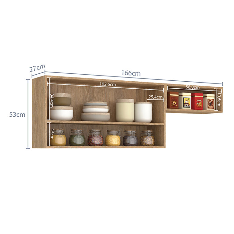 El Mueble Aereo Madri Grey Vekka es la solución perfecta para organizar tu cocina con estilo clásico. Con dos puertas de MDP y estantes incluidos, podrás guardar tus utensilios de forma ordenada. Con una profundidad de 27 cm, alto de 53 cm y ancho de 166 cm, este mueble mural es ideal para espacios reducidos. Requiere ensamblado y cuenta con correderas de metal para mayor durabilidad. ¡Renueva tu cocina con este elegante mueble Vekka!
