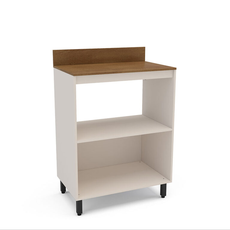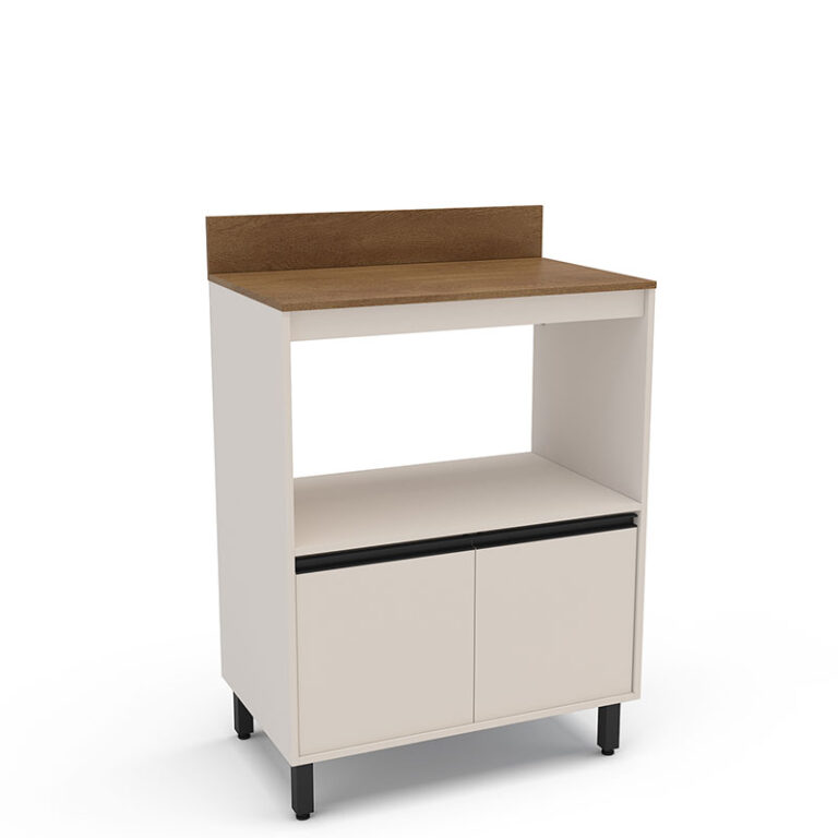 Su estructura robusta en color beige mate con detalles en negro y cubierta superior tipo madera natural aporta calidez y estilo contemporáneo a cualquier cocina. Además, sus patas elevadas facilitan la limpieza y proporcionan estabilidad.