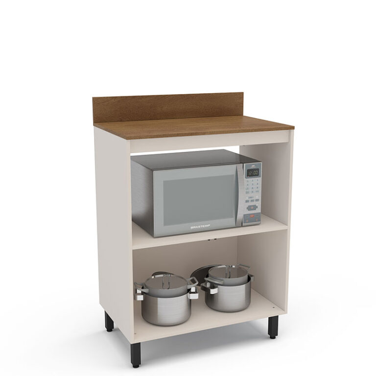 Optimiza tu cocina con el mueble Koya para microondas, una pieza multifuncional que combina diseño moderno y funcionalidad. Ideal para colocar tu microondas, horno eléctrico o cafetera, este mueble ofrece un espacio abierto central y un área inferior cerrada con dos puertas abatibles, perfecta para almacenar utensilios, ollas o alimentos.