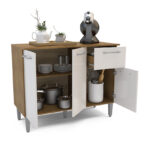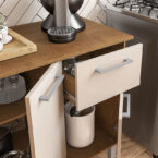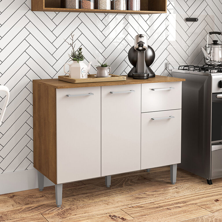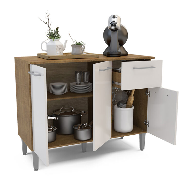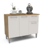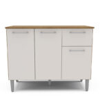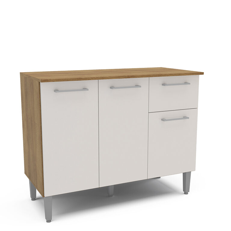 Mostrador fabricado en MDP en color freijó/blanco roto, dispone de 3 puertas y 1 cajón para guardar utensilios, pilas o accesorios de cocina. Es el mueble perfecto para completar la decoración y organización de tu cocina. También puedes combinar este modelo con el armario colgante.