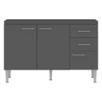 El Mueble Auxiliar Base Balcón Cocina Opie 120 Vekka es la solución perfecta para organizar tu cocina de manera moderna y funcional. Con tres puertas y dos cajones, podrás guardar tus utensilios de cocina de forma ordenada y accesible.