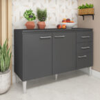 Fabricado en MDP de alta calidad, este mueble cuenta con tiradores de PVC y correderas de metal para garantizar su durabilidad y resistencia. Además, incluye una mesada para facilitar tus tareas culinarias diarias.
