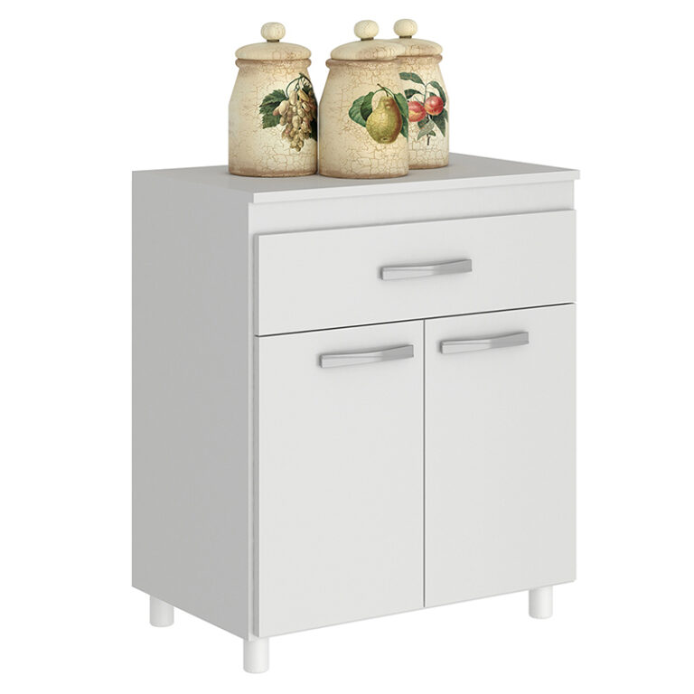 El Mueble Cocina Auxiliar Betty Vekka es la solución perfecta para organizar tu cocina de manera práctica y elegante. Confeccionado en MDP de alta calidad, este mueble de base cuenta con dos puertas, un cajón y tiradores discretos. Además, incluye una mesada para mayor comodidad en tus tareas culinarias.