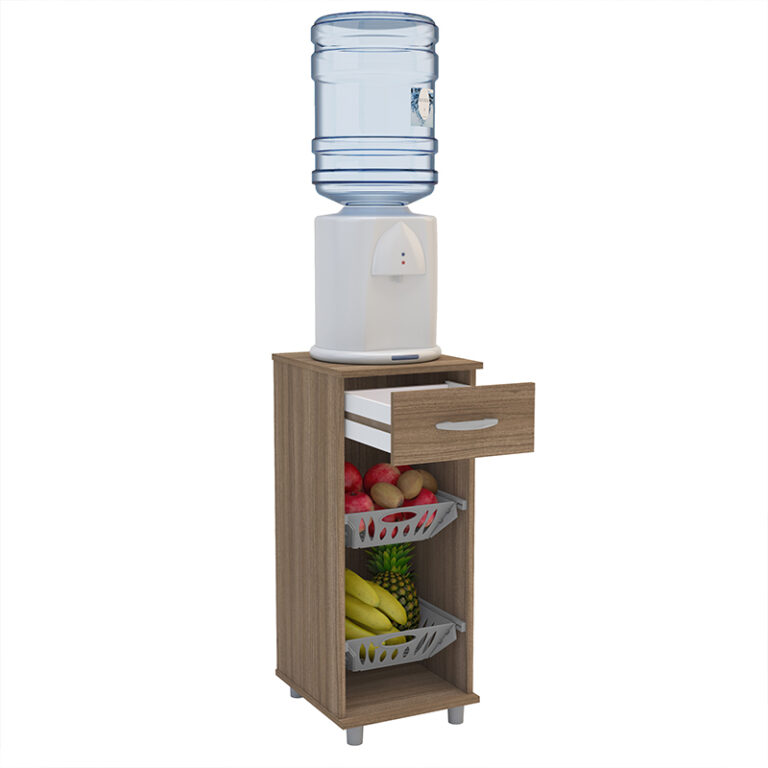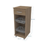 Mueble auxiliar fabricado en MDP con terminación en pintura UV acabado símil madera. Posee un cajón y dos canastos fruteros, ideal para organizar tu cocina de tamaño compacto, se adapta a diversos espacios.