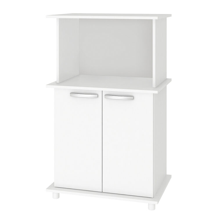 Mueble de Cocina compuesto por dos puertas con repisas en el interior, espacio para microondas; sus bisagras son metálicas, posee 4 patas y tiradores de plástico. Creado para organizar y optimizar espacio en tu cocina.