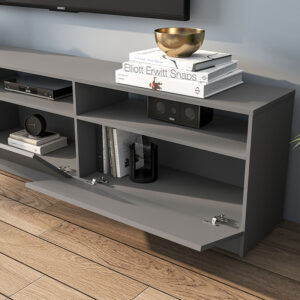 El panel está fabricado en MDF/MDP, materiales resistentes y fáciles de limpiar. Su superficie lisa permite un mantenimiento simple: basta un paño húmedo para retirar polvo, manchas o huellas. Esto lo convierte en una opción excelente para el uso diario, ideal para hogares con niños, mascotas o tráfico constante. Además, su construcción firme y bien diseñada asegura estabilidad al sostener un televisor grande.