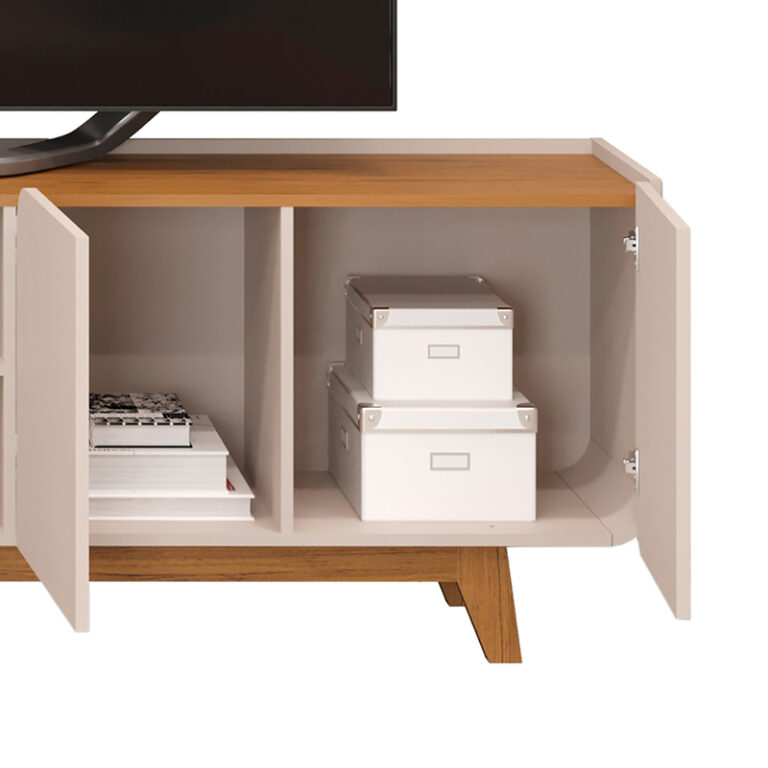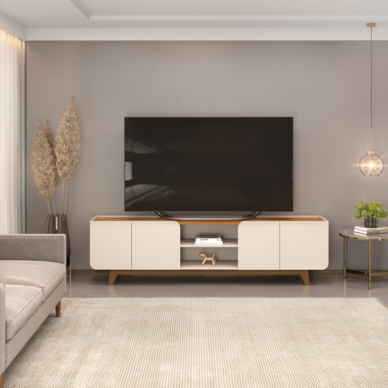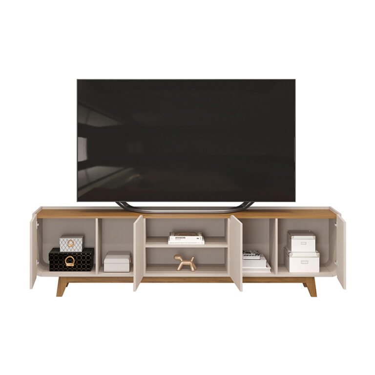 El Rack TV Nadine 75 de la marca VEKKA es la opción perfecta para aquellos que buscan un mueble moderno y funcional para su sala de estar. Con una altura de 61 cm y una profundidad de 40 cm, este rack es ideal para televisores de hasta 75 pulgadas. Cuenta con 4 puertas, 1 estante y un compartimento para parlantes, ofreciendo un amplio espacio de almacenamiento para tus dispositivos electrónicos y accesorios.