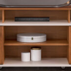 Su diseño clásico y su estructura de MDF/MDP le dan un toque de sofisticación a cualquier sala de estar. Con dos puertas, un estante y un compartimento para parlantes, este rack ofrece espacio de almacenamiento y organización para tus dispositivos electrónicos y accesorios.