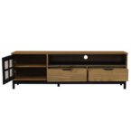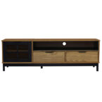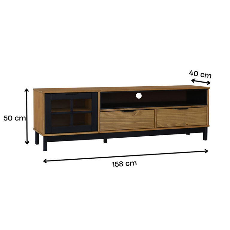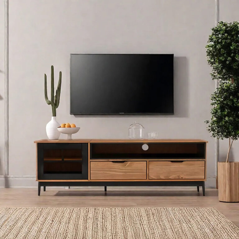 El Rack Tv Pilar 02 Cajones Vekka es la opción perfecta para darle un toque moderno a tu sala de estar. Con una altura de 50 cm y un ancho de 158 cm, este mueble es ideal para televisores de hasta 60″. Su estructura de madera de pino maciza garantiza durabilidad y resistencia.