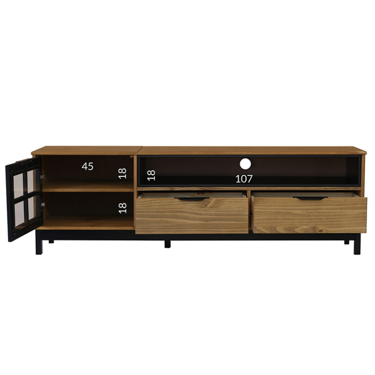 El modelo Pilar cuenta con 2 cajones, 1 puerta y 3 estantes, ofreciéndote espacio de almacenamiento para organizar tus dispositivos electrónicos y accesorios. Además, su estilo moderno se adapta a cualquier decoración, brindando un aspecto elegante y funcional a tu hogar.