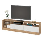 Rack Moyan de estructura en MDP con terminación en pintura UV de acabado símil madera. Capacidad para televisores de hasta 75″, posee 2 puertas abatibles y 4 compartimientos a la vista, para poder organizar todos tus complementos de tv y decoración para darle estilo y a tu sala de estar.