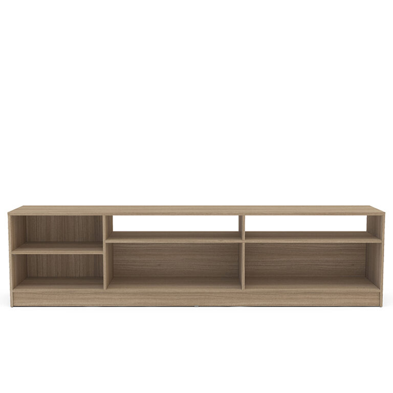 Con un ancho de 180 cm, este rack ofrece un amplio espacio para colocar tu televisor y otros elementos audiovisuales. Además, no cuenta con ruedas, lo que garantiza su estabilidad y seguridad.