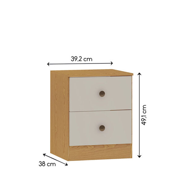El velador complementa el set con 2 cajones funcionales, ideales para mantener objetos personales organizados junto a la cama.