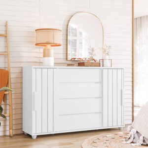 Fabricado en MDF/MDP, el tocador ofrece estabilidad y durabilidad. Su superficie blanca es fácil de limpiar, manteniendo un aspecto impecable con mínimo esfuerzo.