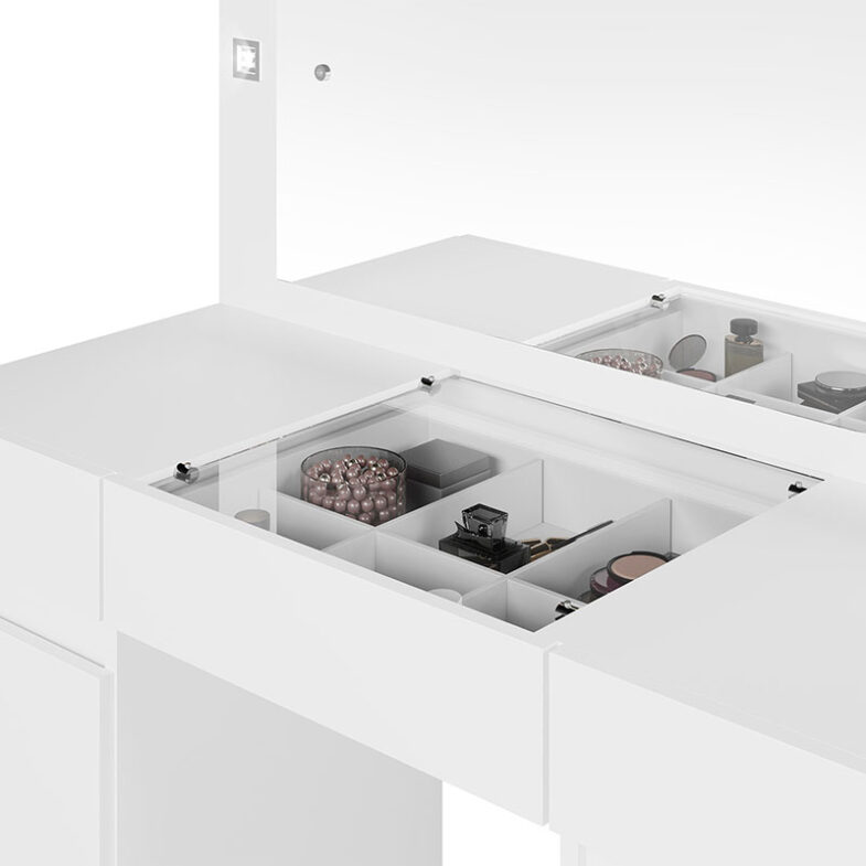 El Tocador Studio 2 Cajones Blanco es el complemento ideal para quienes buscan un espacio práctico y elegante para su rutina diaria.