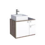 Mueble aereo para baño CAETE blanco tamarindo con lavamanos PRISMA de sobreponer en mármol sintético y puertas con cierre lento*NO INCLUYE GRIFERIA